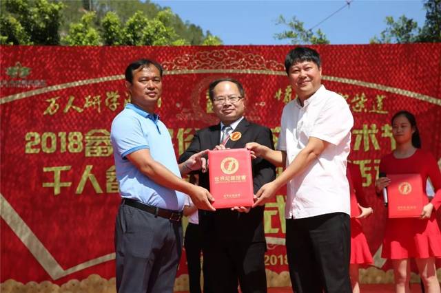 10点30分,世界纪录协会高级认证官张健现场宣布:共有1398人,申创“世界上参与人数最多的畲舞秀”表演世界纪录成功!一项新的世界纪录成功诞生!
